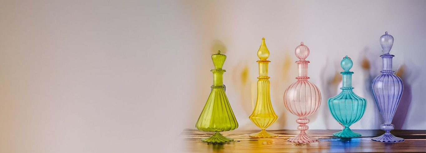 Set of 4 Vintage Glass Perfume Bottles in Vibrant Colors