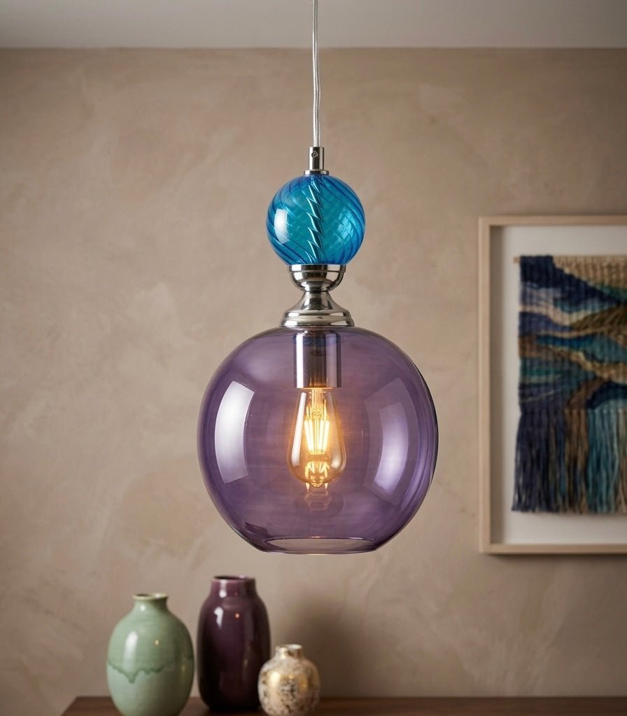 This artisan glass pendant light works beautifully above a kitchen island, dining table, bedside, or hallway, adding character while remaining visually light and timeless.