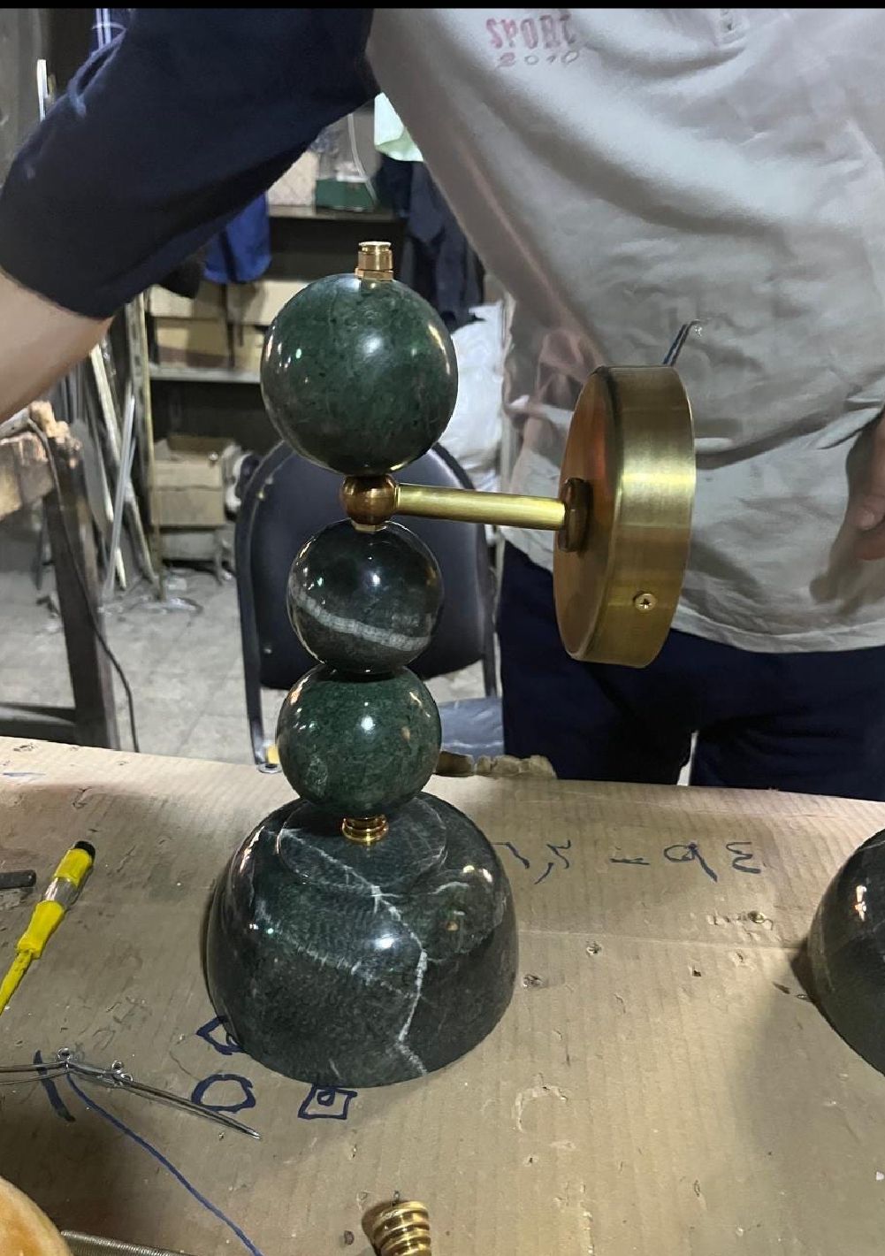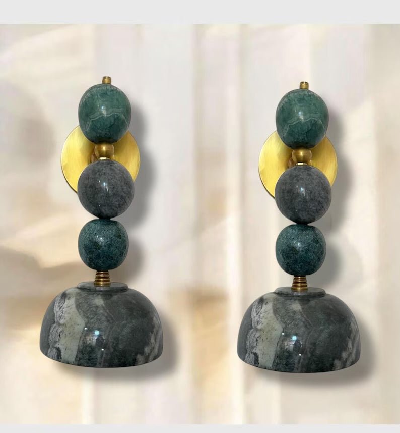 This elegant marble stone wall sconce features a unique combination of rich natural stones and brass accents, bringing luxury and style to your interior space. With its modern geometric design, it serves as both a functional lighting fixture and a statement piece of art. Perfect for hallways, living rooms, or bedrooms, this handcrafted sconce provides a warm, ambient glow while showcasing the beauty of natural stone. Available for custom finishes and configurations.