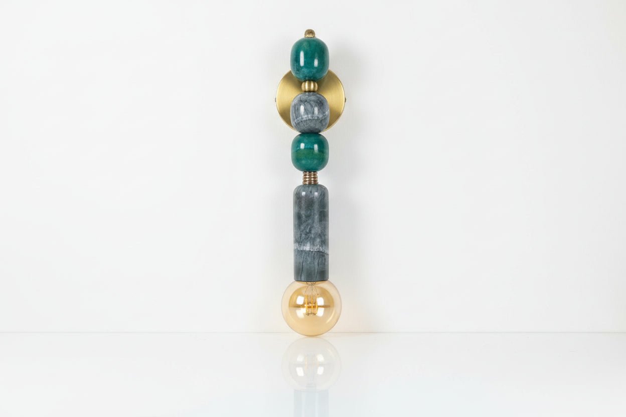 Handmade Brass finish sconce lighting with Green Marble Gemstones - sconce lighting