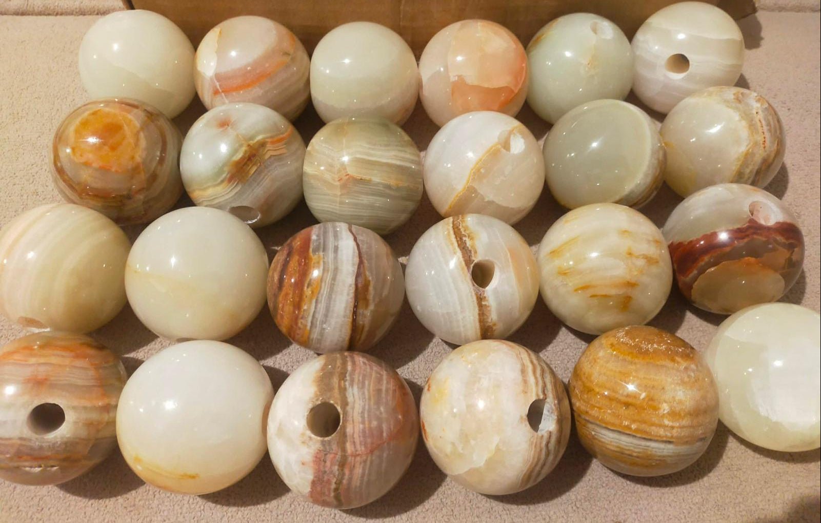 Onyx is a natural stone, so variations in color and veining will occur. Tones may include creamy beige, soft green, warm brown, and other earthy shades. Each piece is unique.
