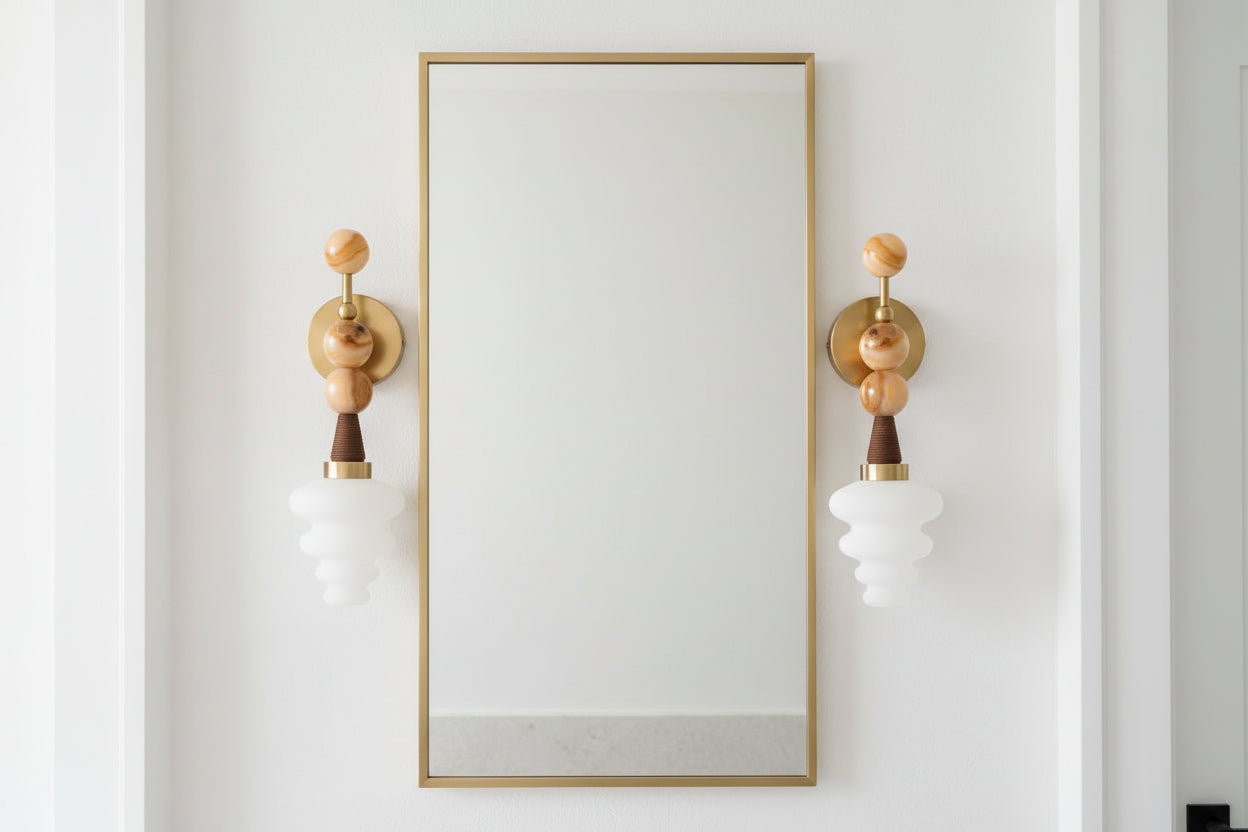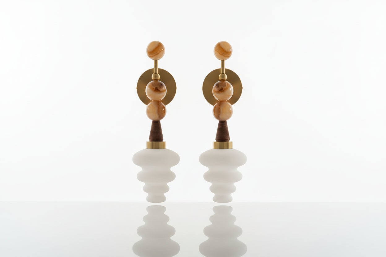 Handmade Onyx & Frosted Glass Wall Sconce with Leather โ Brass Wall Light Fixture